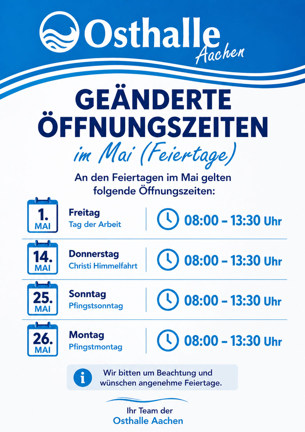 Unsere Riesenrutsche kann im Moment leider nicht eingesetzt werden (Stand: 23.02.2023), aber das Kinderbecken samt Rutsche und Wasserteppich sorgen für jede Menge Spaß für die ganze Familie. Ob bei typischem Aachener Wetter oder als gute Freizeitidee – die Osthalle bietet alles was Kinderherzen höher schlagen lässt, und das zu günstigen Eintrittspreisen.